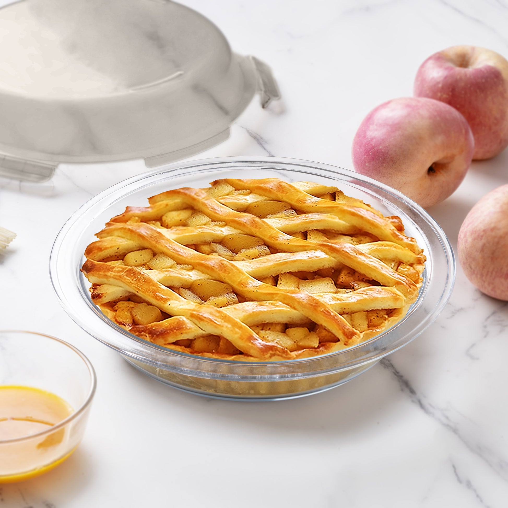 Cook With Color Glass Pie Dish with Lid, 9-Inch, BPA-Free Borosilicate, Microwave & Dishwasher Safe