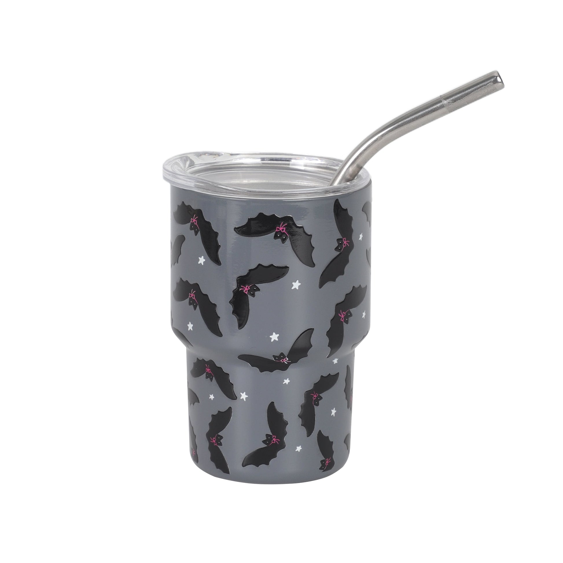 Cook With Color 5 oz Halloween Mini Tumbler with Lid & Straw Ð Bat Design, Non-Slip Silicone Base